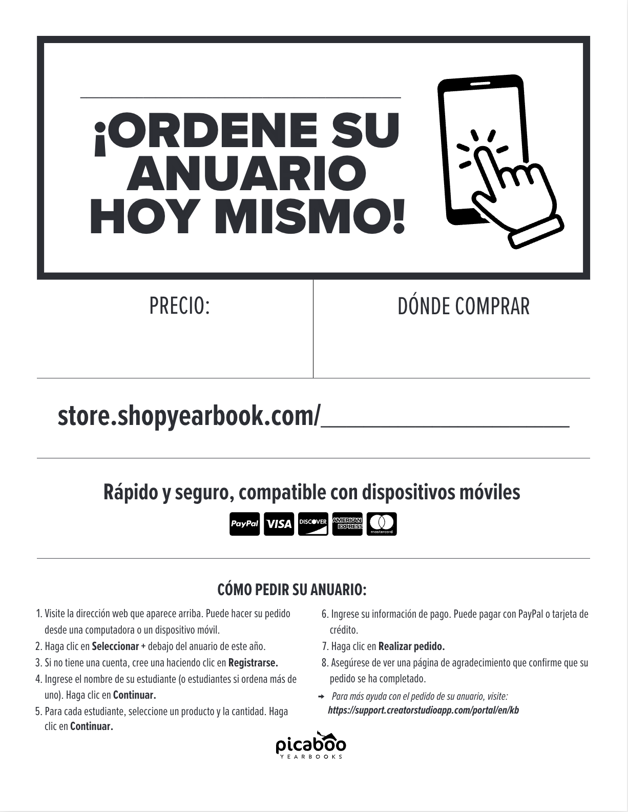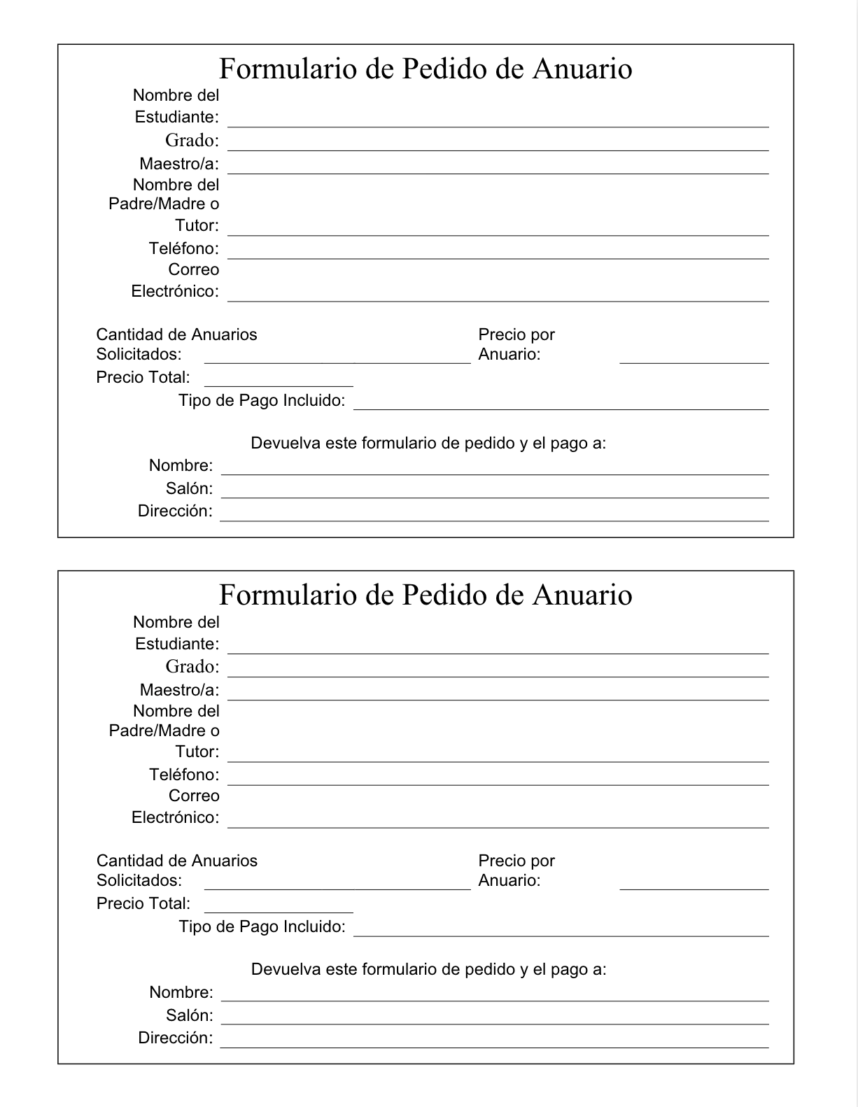 Fill in the Blank Yearbook Sales Flyer Spanish